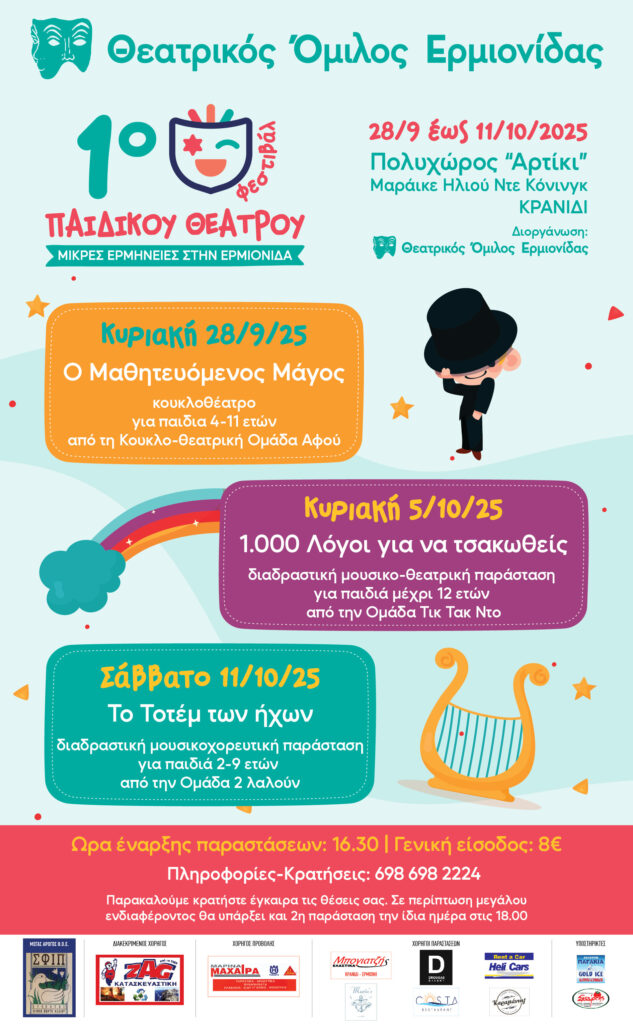 ΕΝΑΡΞΗ 1ου ΦΕΣΤΙΒΑΛ ΠΑΙΔΙΚΟΥ ΘΕΑΤΡΟΥ “ΜΙΚΡΕΣ ΕΡΜΗΝΕΙΕΣ ΣΤΗΝ ΕΡΜΙΟΝΙΔΑ”