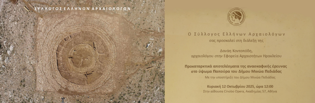 Ο Σύλλογος Ελλήνων Αρχαιολόγων σας προσκαλεί στην πρώτη διάλεξη της σειράς “Περιηγήσεις με την Αρχαιολογική Υπηρεσία”