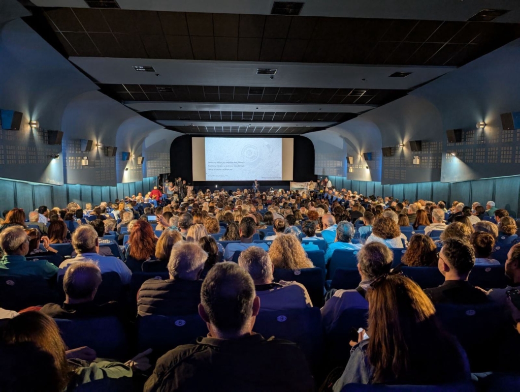 Στην κατάμεστη αίθουσα του CINOBO ΟΠΕΡΑ, με έντονη την παρουσία της αρχαιολογικής κοινότητας, πλήθους κόσμου και με δυναμική παρουσία πολιτών της Κρήτης, παρουσιάστηκαν τα πρώτα αποτελέσματα της ανασκαφής και η ταυτότητα του μνημείου με τα έως τώρα ανασκαφικά αποτελέσματα.